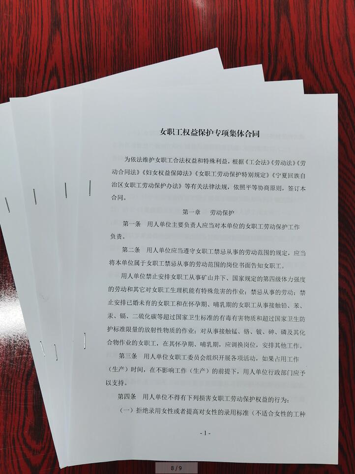 嚴(yán)格按照上級單位要求進(jìn)一步深化女職工權(quán)益保護(hù)工作,結(jié)合自身情況和女職工維權(quán)訴求開展專項(xiàng)集體合同簽訂工作,依法維護(hù)女職工合法權(quán)益和特殊利益。