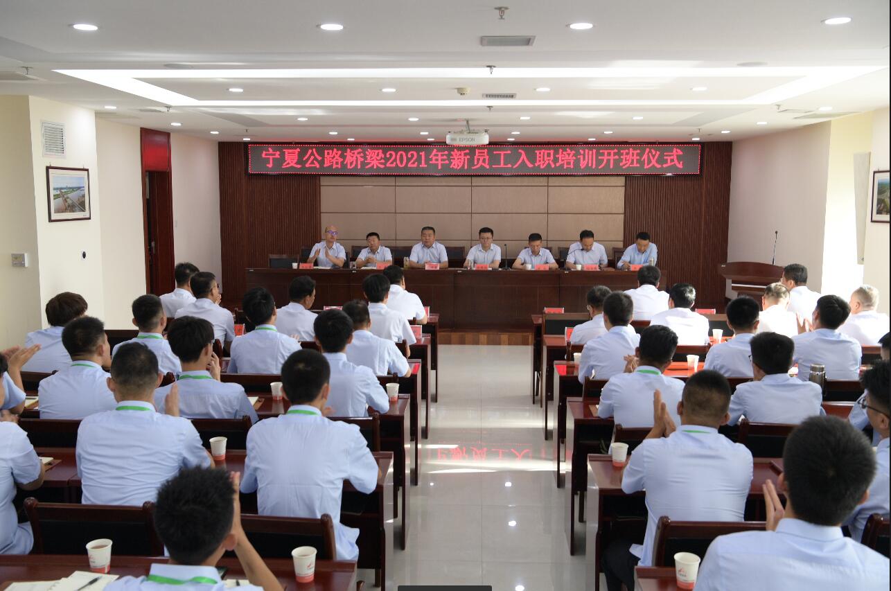 7月5日上午,寧夏公路橋梁建設有限公司舉行了2021年新員工入職培訓開班儀式。公司董事長陳國權,總經理金成,黨委書記、監(jiān)事會主席張紹春,監(jiān)事王軍,副總經理孫為國、王向華,財務總監(jiān)王輝出席了開班儀式,總部各職能部門負責人、各分公司經理及新入職的37名員工參加了開班儀式。儀式由孫為國主持。