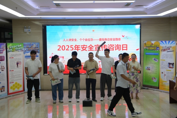 全國第24個(gè)“安全生產(chǎn)月”核心活動——“安全宣傳咨詢?nèi)?rdquo;在各項(xiàng)目火熱開展。6月17日下午,公司在一樓大廳設(shè)置安全咨詢臺、易拉寶展區(qū)、電子屏循環(huán)播放主題宣傳片,組織機(jī)關(guān)員工圍繞“人人講安全、個(gè)個(gè)會應(yīng)急——查找身邊安全隱患”活動主題,通過沉浸式體驗(yàn)、教育賦能、發(fā)放宣傳材料、競答互動、科普宣傳等多元形式,開展安全宣傳咨詢?nèi)栈顒印?/p>